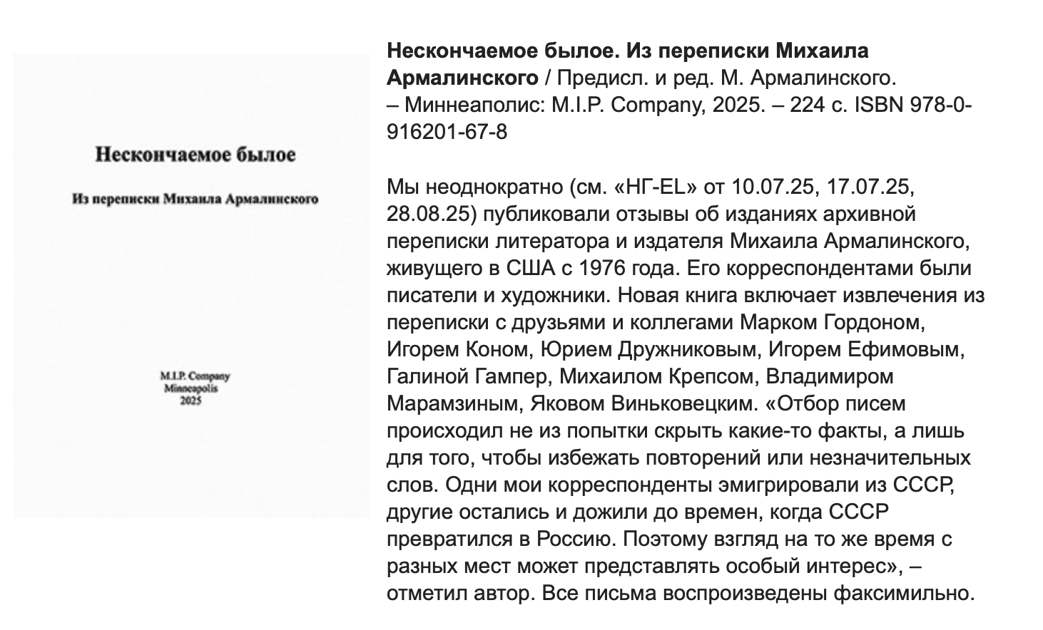 И. Бродского Валентины Полухиной (Лондон) и литератора Михаила Армалинского (Миннеаполис) представляет собой не только историческую, филологическую и психологическую ценность, но и является увлекательным чтением для любого, кто неравнодушен к русской литературе.