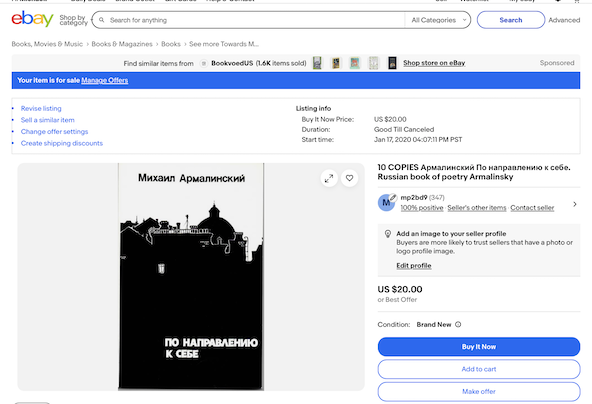 На сайте eBid, конкурирующим с eBay, мою книжку стихов По направлению к себе продают за $299, а остальные – всего по $199.
